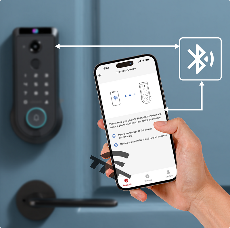 LockinCam™ 2K camera and AI-powered motion detection give you instant alerts and live views when someone’s at the door—no cloud subscription needed.