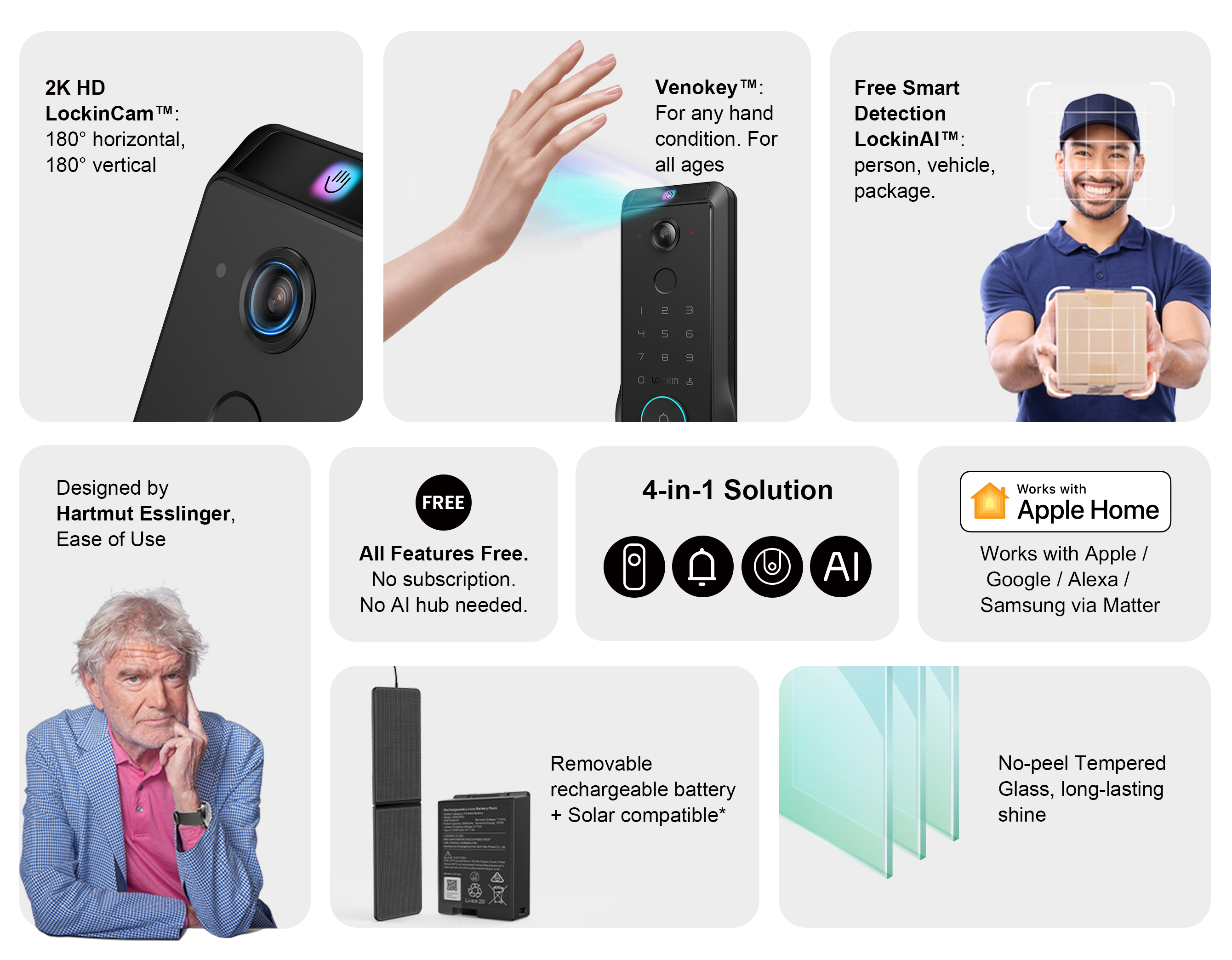 *Note that Lockin Veno series is not compatible with storm doors as the storm door may block the camera. We recommend that you ensure your door is a standard entry door without a storm door before installing this producct.